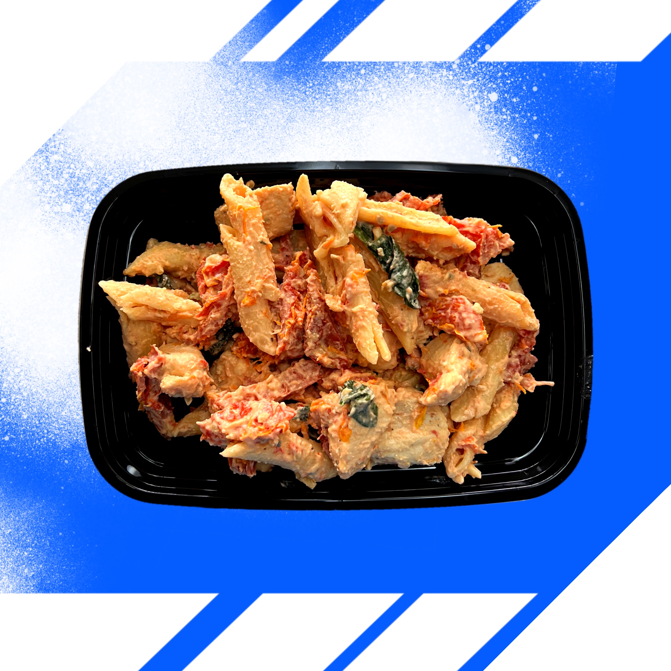 chicken baked, penne pasta, sun dried tomatoes, heavy cream (heavy cream, skim milk, carrageenan), spinach, mozzarella (cultured milk, vinegar, microbial rennet, salt), parmesan (milk, cheese cultures, salt, enzymes), garlic, onion, salt, spices and herbs (including black pepper, parsley, red pepper, paprika), orange peel, and green bell pepper., garlic, kosher salt, black pepper, cayenne