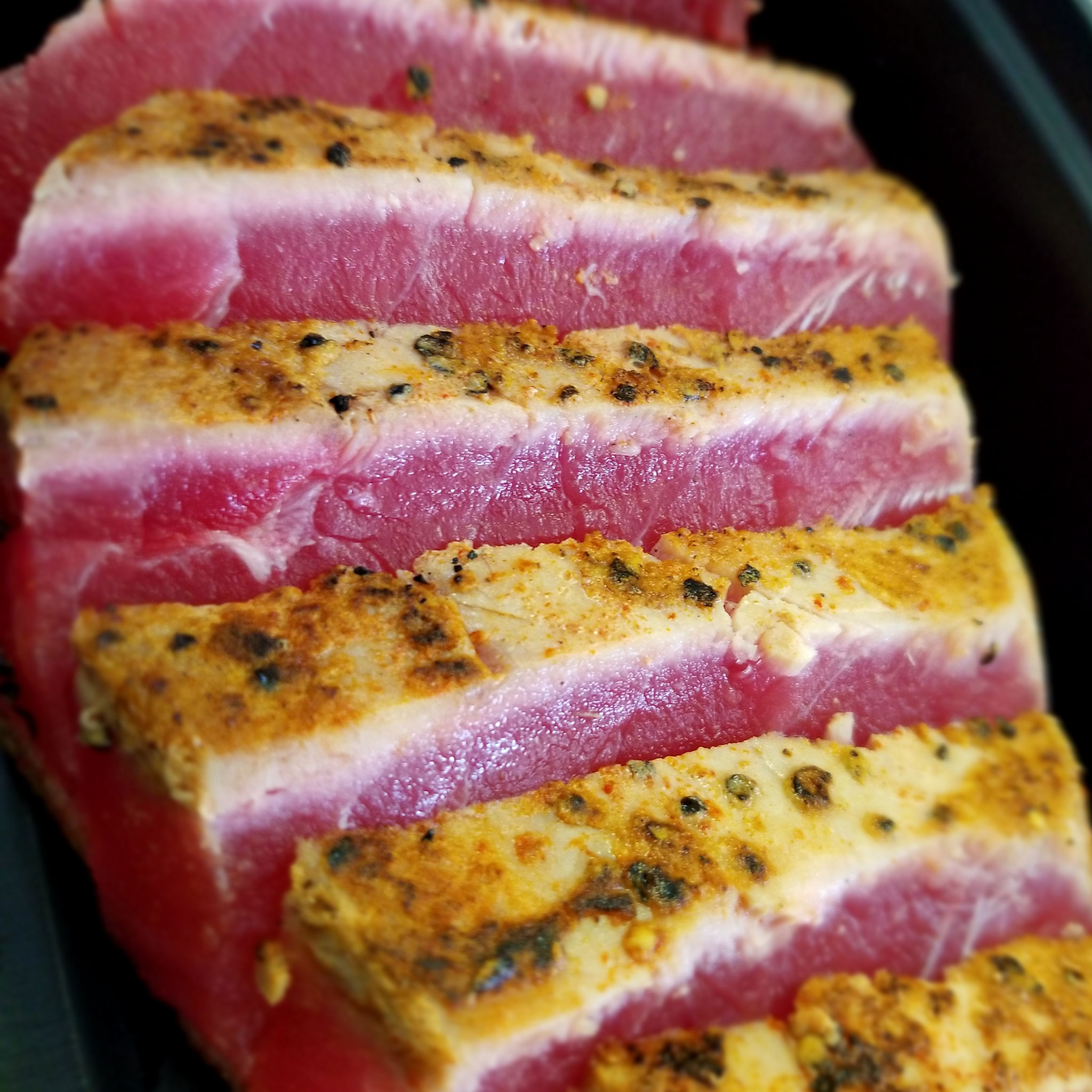 Tuna seasoned with salt, pepper, and chipotle seasoning.